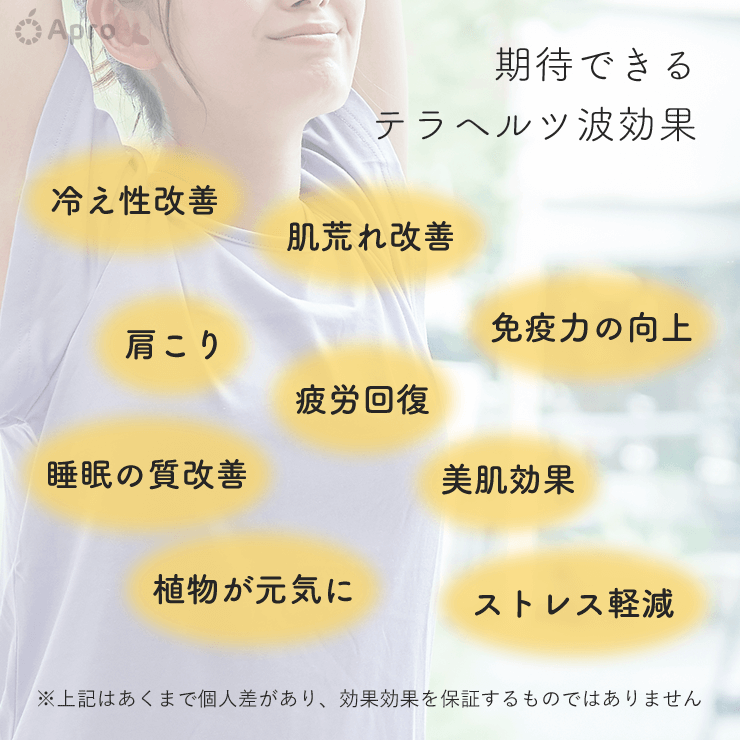 《テラヘルツ鉱石の効果効能とは!?》 近年これほど注目されるテラヘルツ鉱石には、以下のような効果があると云われています。 テラヘルツ波は、遠赤外線を超える超遠赤外線または近赤外線と言われています。遠赤外線より波長が長いため、遠赤外線には無い透過性と浸透性があり、遠赤外線よりも物質の内部に作用し、性質を瞬時に改善、活性化すると云われています。特に人体への悪影響もなく、テラヘルツ波の事を生命光とも呼ばれています。免疫力の向上、冷え性が無くなり肩凝りの改善、肌荒れの改善、肌のハリやキメ美肌効果、ぐっすり眠れることや夜トイレに起きない、植物が腐りにくい、ストレス解消などあります。 ※上記はあくまで個人差があり、効果の保証をしたものではございません。