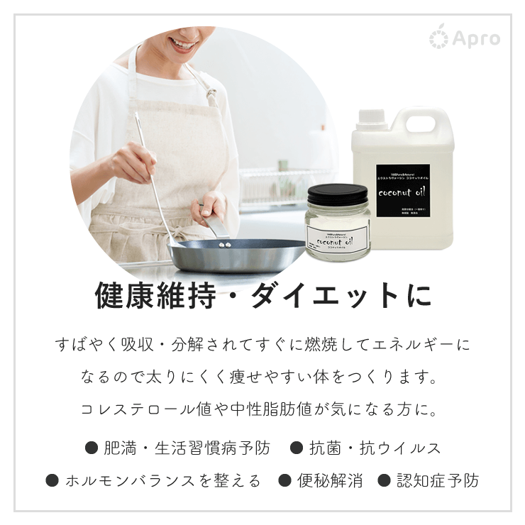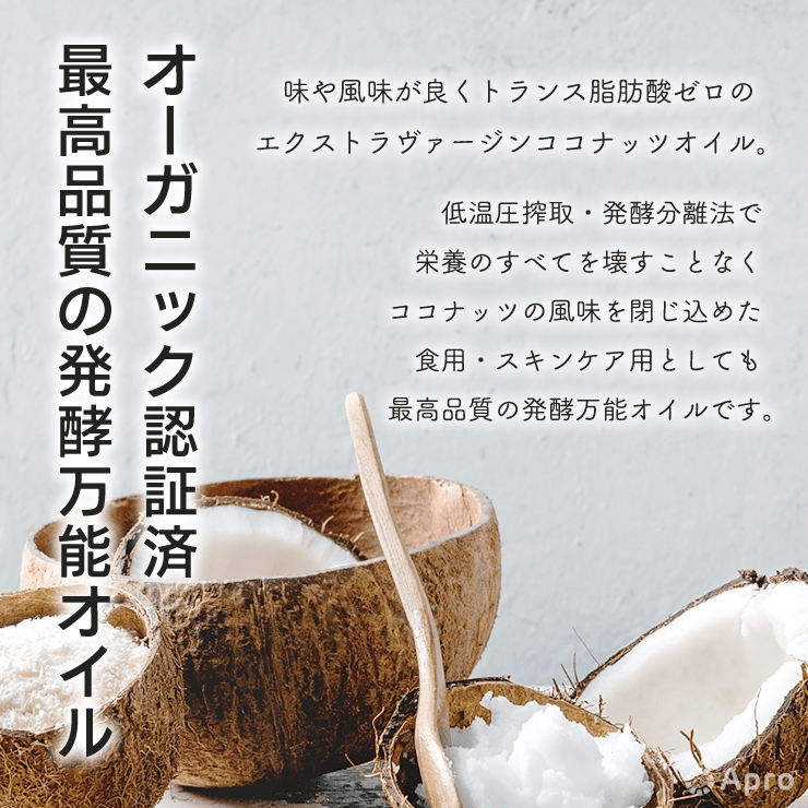 栄養のすべてを壊すことなくココナッツの風味も閉じ込められている低温圧搾取・発酵分離法はグレードが高く、食用・スキンケア用としても最高品質です。