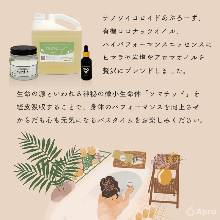 ヒマラヤ岩塩、炭酸水素na、硫黄mg、有機オリーブ油、はちみつ、タピオカスターチ、水、大豆脂肪酸(ナノソイコロイド)、ヤシ油、ソマチッド粉末、ローズ粉末、有機ピーナッツ油、クレイローズ油