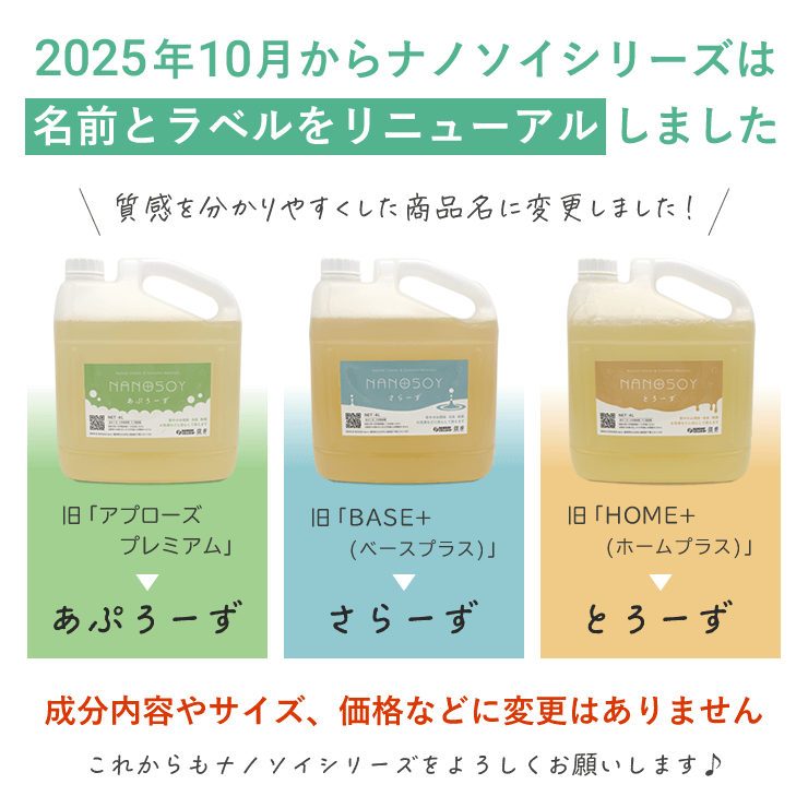 ナノソイ・コロイドは、大豆から生まれた植物性由来の多機能洗浄剤です。