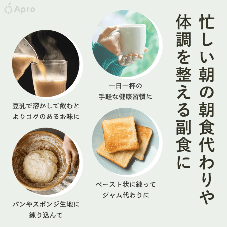 豆乳で溶かして飲むとよりコクのあるお味になります。