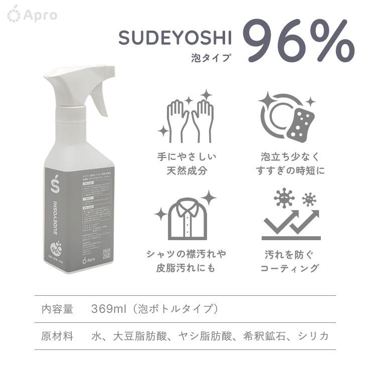 充分な洗浄力に加え、抗菌力、抗カビ、消臭力、汚れから守るコーティング。余分なすすぎがなく、2度拭きも不要。泡立ちが少なく99%生分解されるので環境にやさしい商品です。