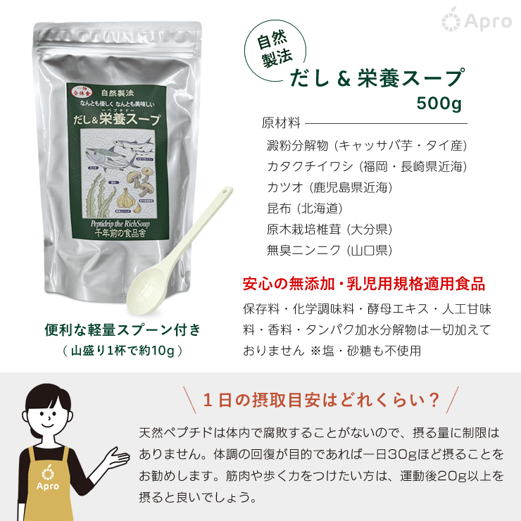 千年前の食品舎 だし&栄養スープ 500g 国産 無添加 ペプチド 出汁粉末 鰹 いわし 昆布 天然だし 高吸収たんぱく質 離乳食OK 健康食品 調味料 スープ出汁 栄養 スープ